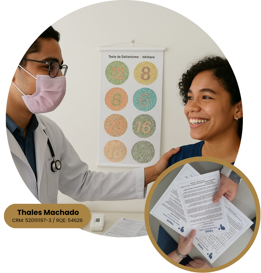 Thales Machado: tem formação em Ayurveda e Medicina do Trabalho com 6 anos de atuação como médico examinador.